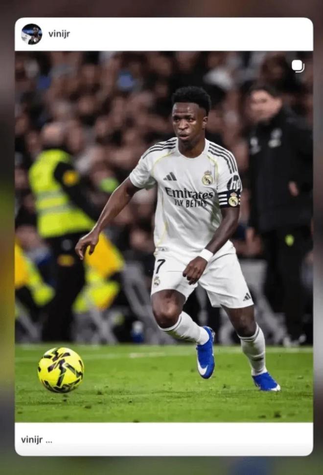 所以,在拼尽全力却依然被提前换下之后,失望的维尼修斯删除了自己社媒的皇马头像,改为一张身披国家队战袍、代表巴西队比赛时的照片。并发布了本场比赛的照片仅配文:“...”。